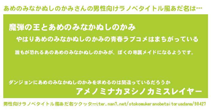 | 意味不明あだ名 | 『永久保存あめのみなかぬしのかみ』 |