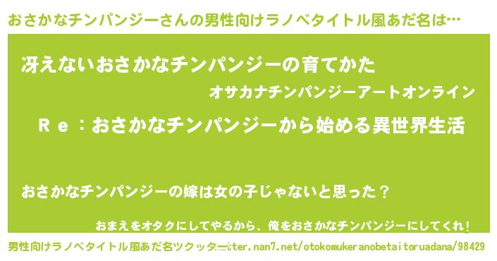 | ヒーロー風カッコイイあだ名 | 『究極戦士オサカナチンパンジー』 |