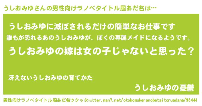 | 女子向けラノベタイトル風あだ名 | 『うしおみゆ様がみてる』 |