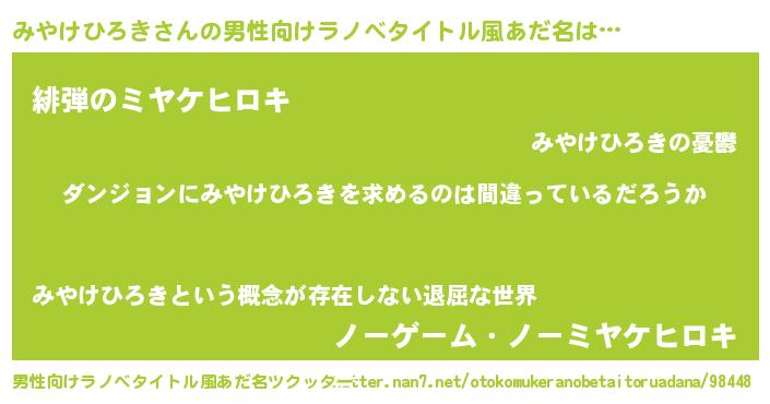 | 女子向けラノベタイトル風あだ名 | 『みやけひろきは平凡を望む』 |