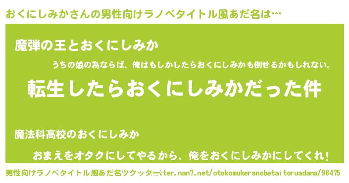 | ヒーロー風カッコイイあだ名 | 『仮面オクダー』『愛の使者おくにしみか』 |