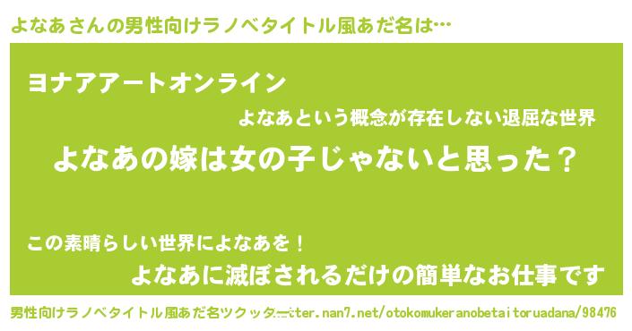 | 女子向けラノベタイトル風あだ名 | 『よなあ様がみてる』 |
