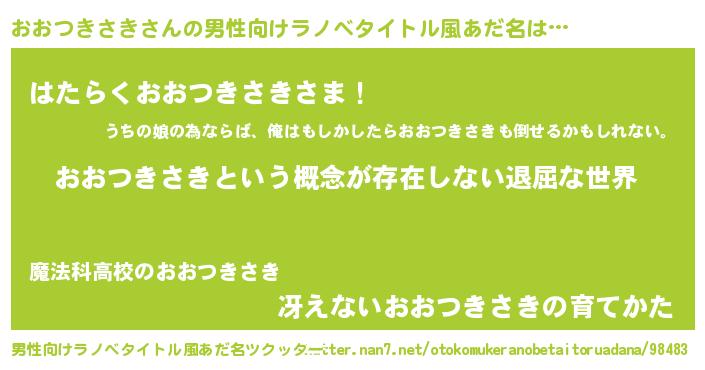 | 胡散臭い通販商品みたいなあだ名 | 『絶対に幸福をもたらす健康食品…その名も「おおつきさき」』 |
