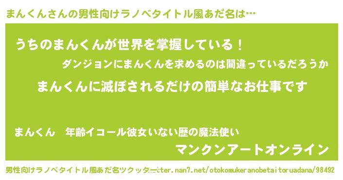 | 意味不明あだ名 | 『ペロリンまんくん』『ニラ科まんくん属』 |