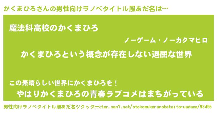| 女子向けラノベタイトル風あだ名 | 『異世界で失敗しない100のかくまひろ』 |