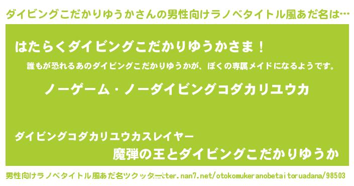 | 女子向けラノベタイトル風あだ名 | 『死神ダイビングこだかりゆうかの再婚』 |