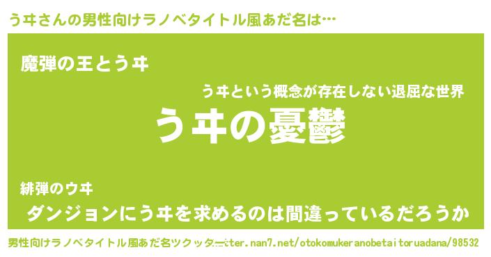 | 胡散臭い通販商品みたいなあだ名 | 『モテモテ間違いなし水晶球…その名も「うヰ」』 |