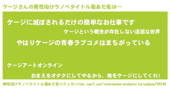 | 意味不明あだ名 | 『ケージフォーエバー』『永久保存ケージ』 |