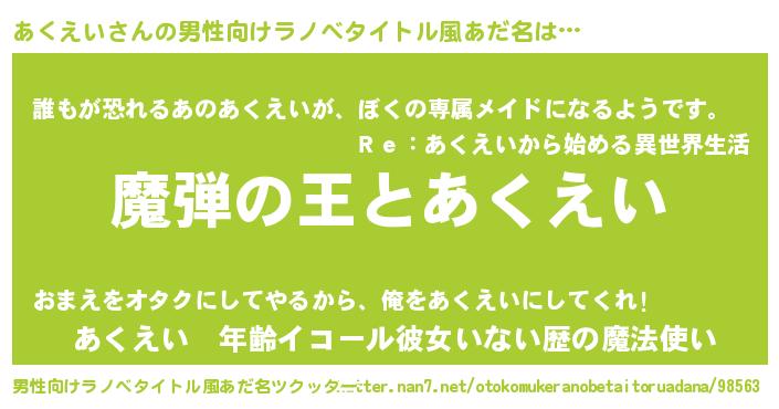 | ヘコむあだ名 | 『あくえい(笑)』『なまこ酢』 |