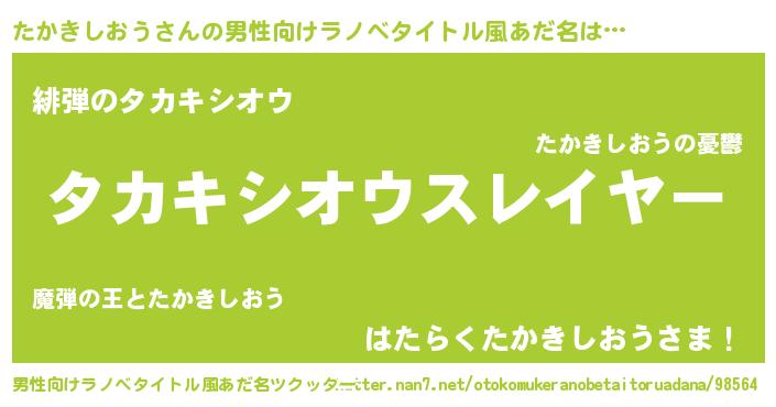 たかきしおうさんの男性向けラノベタイトル風あだ名をツクッター!