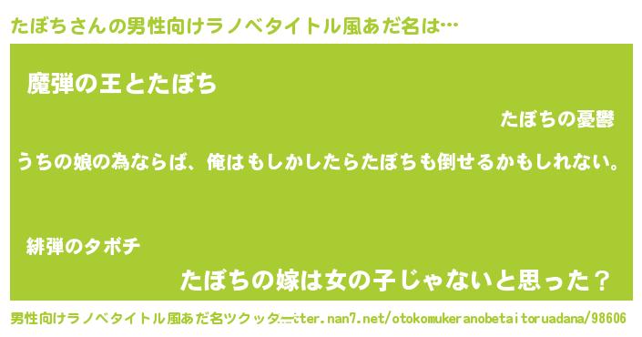 | 女子向けラノベタイトル風あだ名 | 『たぼちの婚約者』『たぼち様がみてる』 |