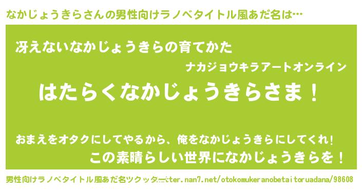| 欧米人風あだ名 | 『アンジェラ・なかじょうきら』 |