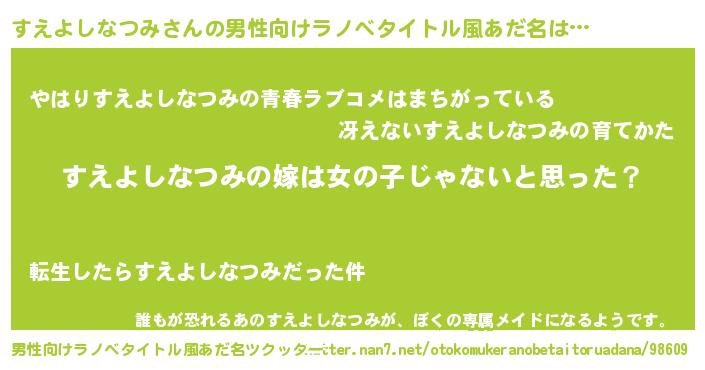 | 女子向けラノベタイトル風あだ名 | 『すえよしなつみ様がみてる』 |