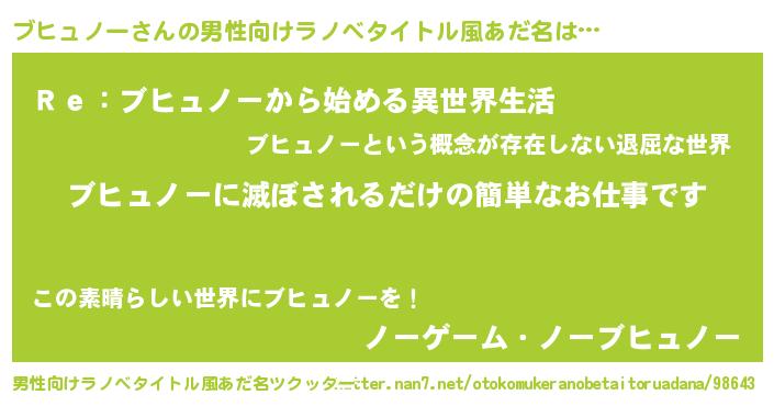 | 意味不明あだ名 | 『自称ブヒュノー』『永久保存ブヒュノー』 |