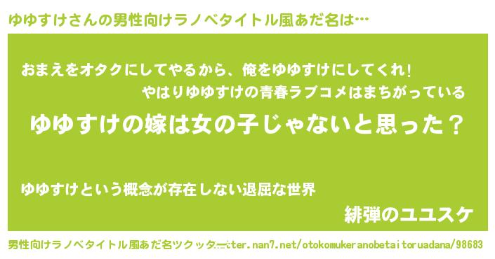 | 女子向けラノベタイトル風あだ名 | 『ゆゆすけ様がみてる』 |
