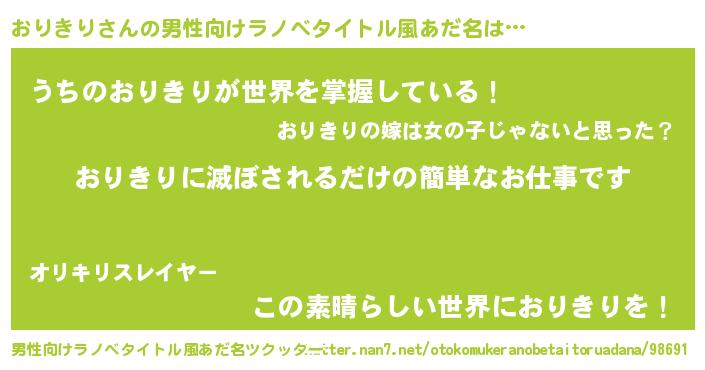 | ヒーロー風カッコイイあだ名 | 『仮面オリダー』『炎刃騎士オリ』 |
