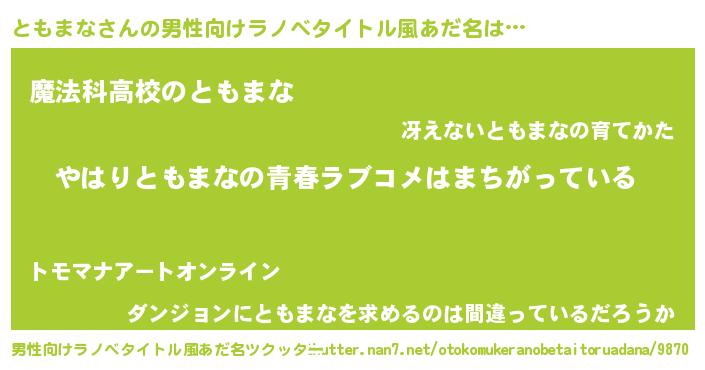 | 意味不明あだ名 | 『ともまなフォーエバー』『自称ともまな』 |