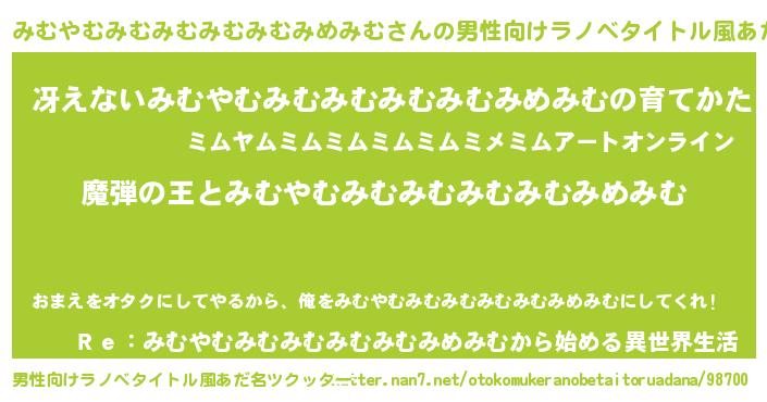 みむやむみむみむみむみむみめみむさんの男性向けラノベタイトル風あだ名をツクッター!