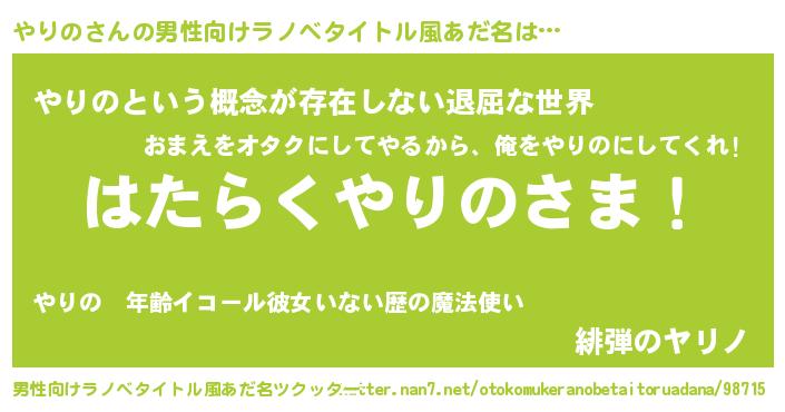 | ヒーロー風カッコイイあだ名 | 『ネオヤリノ』『正義の使者やりの』 |