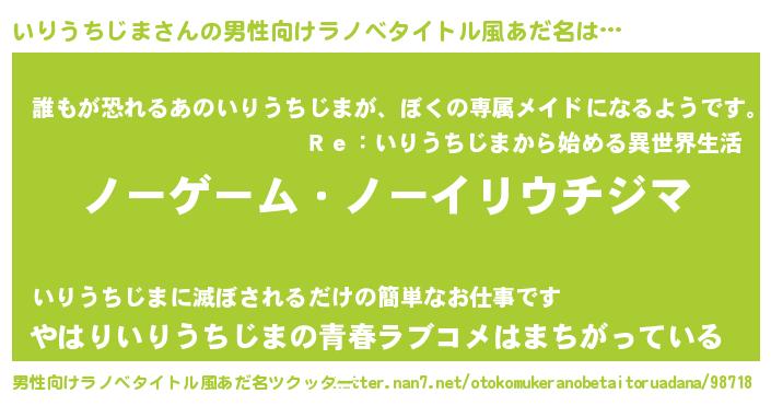 | 女子向けラノベタイトル風あだ名 | 『いりうちじま恋絵巻』 |