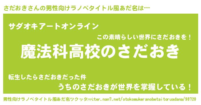 | ヒーロー風カッコイイあだ名 | 『ウルトラ戦士サダオキ』『仮面サダダー』 |