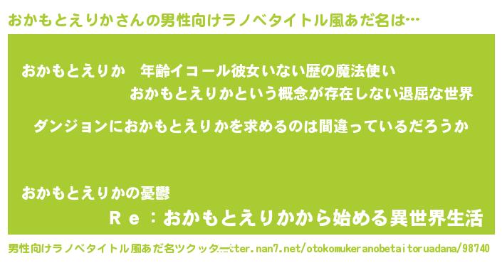 | 女子向けラノベタイトル風あだ名 | 『おかもとえりかの卵を拾いまして』 |