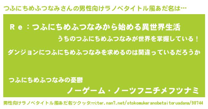 | 女子向けラノベタイトル風あだ名 | 『つふにちめふつなみは平凡を望む』 |