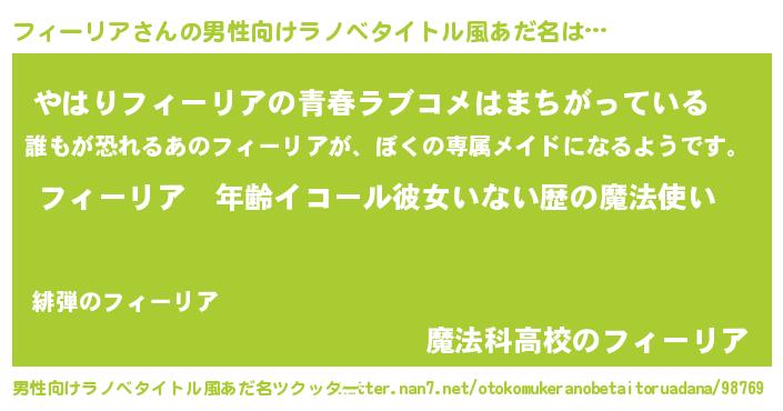 フィーリアさんの男性向けラノベタイトル風あだ名をツクッター!