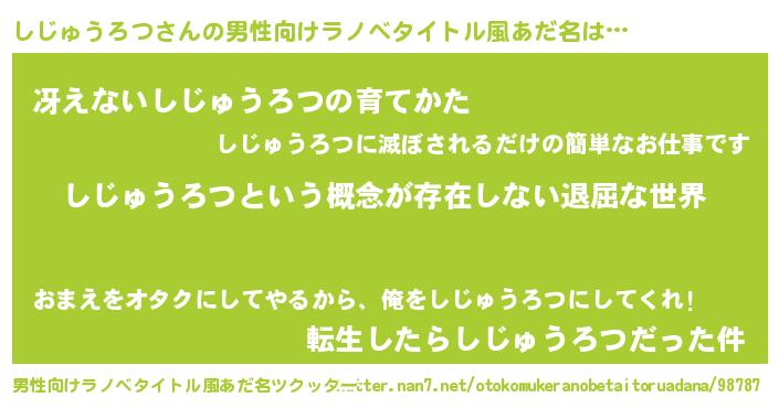 | 意味不明あだ名 | 『永久保存しじゅうろつ』 |