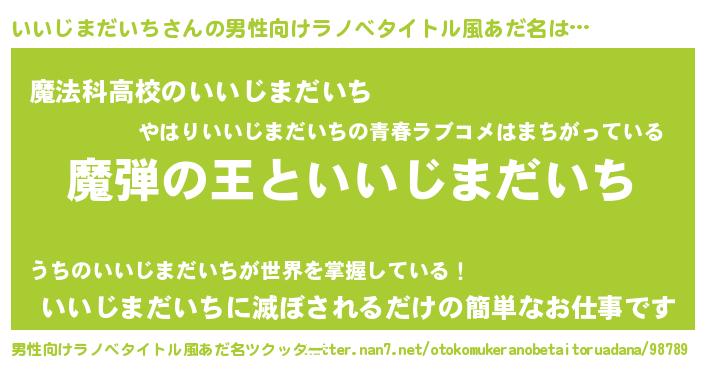 | 女子向けラノベタイトル風あだ名 | 『乙女ゲームの破滅フラグしかない悪役いいじまだいちに転生してしまった…』 |