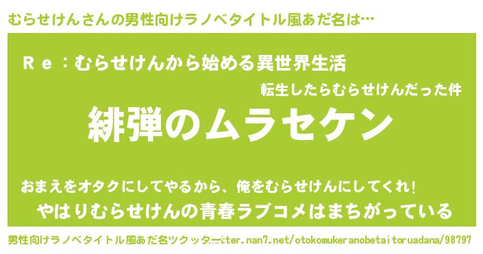 | ヒーロー風カッコイイあだ名 | 『ウルトラ戦士ムラセケン』 |