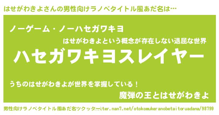 | ヒーロー風カッコイイあだ名 | 『正義の使者はせがわきよ』 |