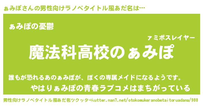 | ヒーロー風カッコイイあだ名 | 『超時空戦士ァミポ』『スーパーァミポ』 |