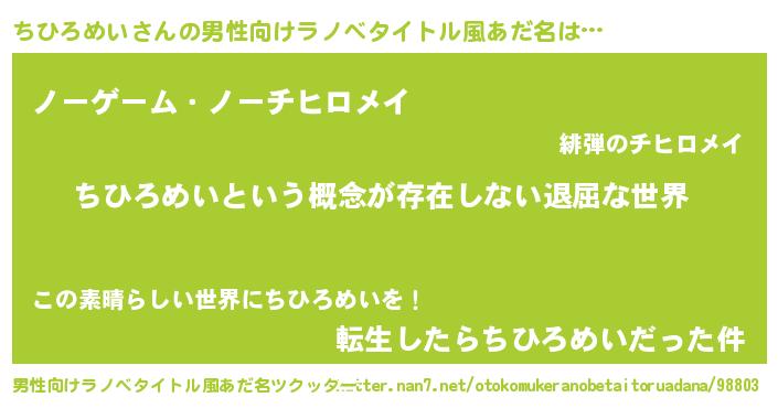 | ヘコむあだ名 | 『ちひろめい(小並感)』『ちひっちょ』 |