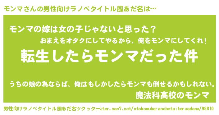 | 意味不明あだ名 | 『なめこ科モンマ属』『自称モンマ』 |