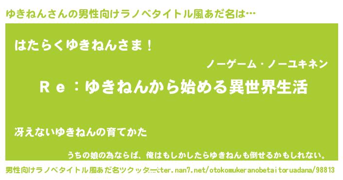 | 女子向けラノベタイトル風あだ名 | 『闇のゆきねん』『ゆきねんの婚約者』 |