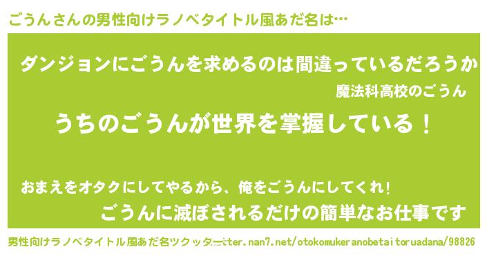 | 胡散臭い通販商品みたいなあだ名 | 『全米が絶賛したサプリメント…その名も「ごうん」』 |
