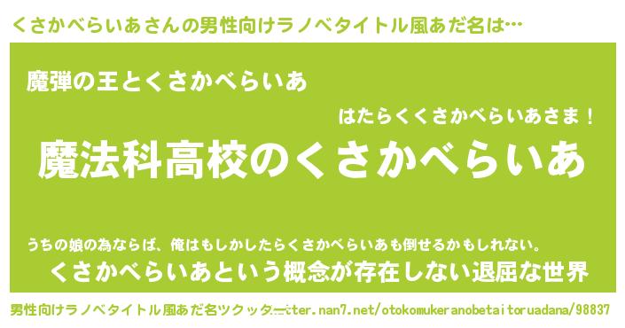 女子向けラノベタイトル風あだ名 | 『くさかべらいあなんてお断りですっ。』 |