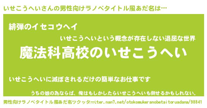 | 女子向けラノベタイトル風あだ名 | 『いせこうへいなんてお断りですっ。』 |