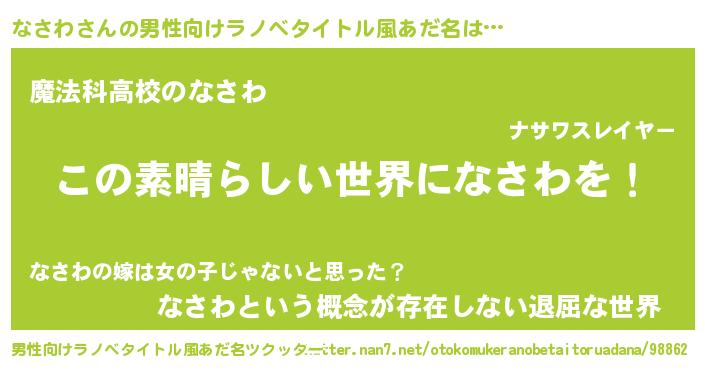 | ヘコむあだ名 | 『なさわ(遠い目)』『なさお』『牛乳』 |