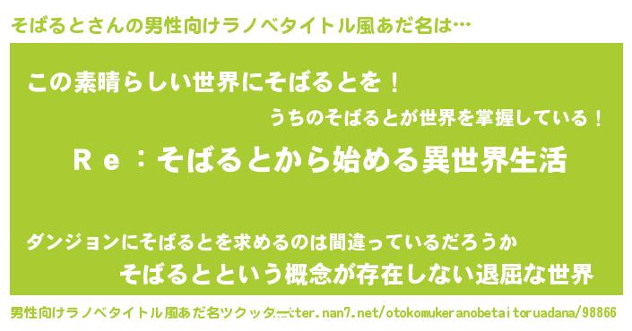 | 女子向けラノベタイトル風あだ名 | 『闇のそばると』『そばるとは平凡を望む』 |