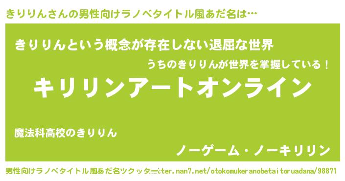 | 胡散臭い通販商品みたいなあだ名 | 『億万長者になれる霊験あらたかなお札…その名も「きりりん」』 |