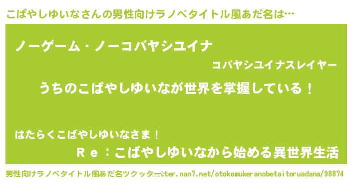 | 女子向けラノベタイトル風あだ名 | 『男装こばやしゆいなの憂鬱な任務』 |