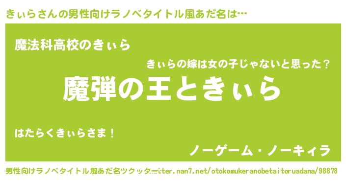 | ヒーロー風カッコイイあだ名 | 『仮面キィダー』『ウルトラ戦士キィラ』 |