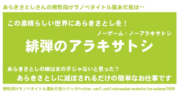 | 意味不明あだ名 | 『住所不定無職あらきさとし(47歳)』 |