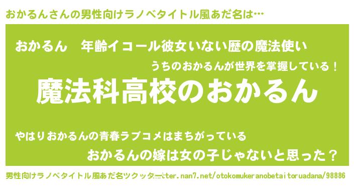 | 胡散臭い通販商品みたいなあだ名 | 『ガンによく効くアガリクス…その名も「おかるん」』 |