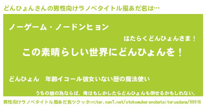 | ヒーロー風カッコイイあだ名 | 『仮面ドンダー』『慈愛の使者どんひょん』 |
