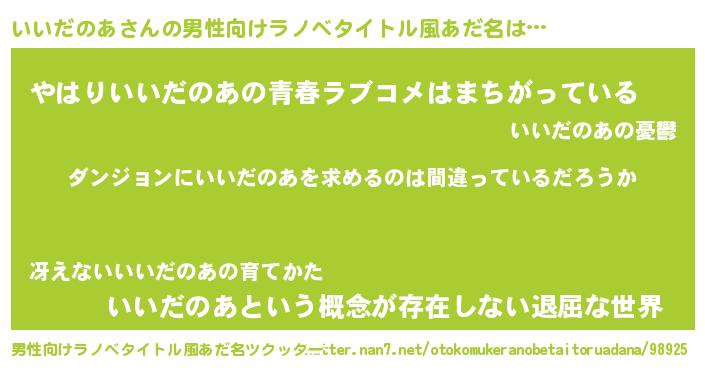 | 意味不明あだ名 | 『とにかく怪しいいいだのあ』 |