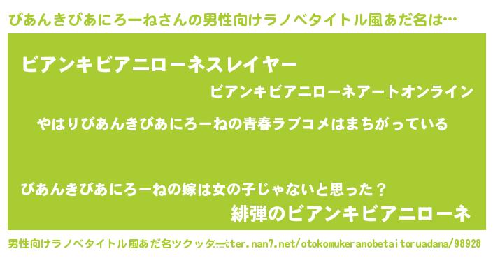 | 女子向けラノベタイトル風あだ名 | 『びあんきびあにろーねの雑貨屋さん』 |