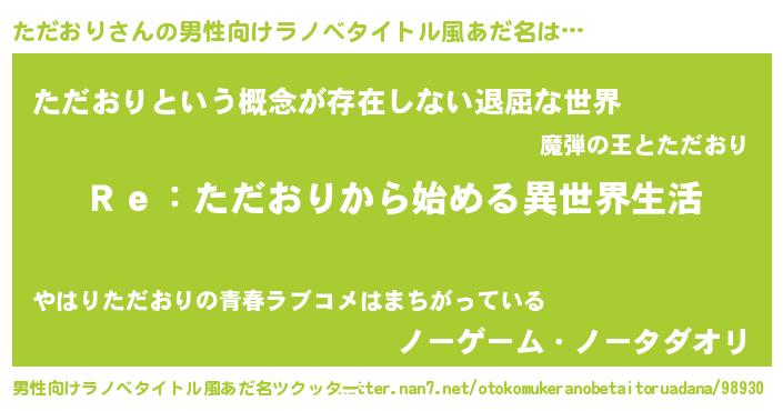 | 意味不明あだ名 | 『自称ただおり』『永久保存ただおり』 |